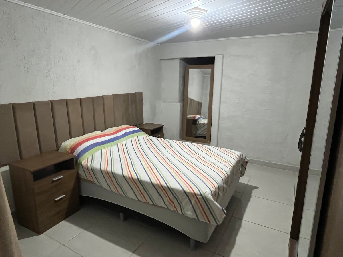 1 en-suite con letto matrimoniale e 1 letto singolo, 1 en-suite nella zona barbecue con 1 box matrimoniale, 2 camere da letto con 1 box matrimoniale e 1 singolo box, 1 baita con 1 materasso matrimoniale. cucina con piano cottura, frigorifero duplex; acqua filtrata, ampio soggiorno con TV via cavo con Netflix, divano retrattile; 1 bagno sociale; zona gourmet con piano cottura a legna, congelatore, piano cottura industriale con forno, lavandino e 1 bagno, 2 tifoni, grande tavolo in legno per tutta la famiglia, altalena per bambini, piscina.
