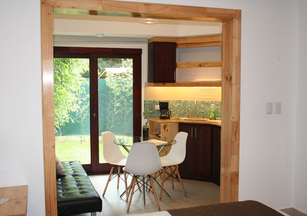 Goditi un patio privato con un bel giardino con una piccola terrazza... Il nostro Patio Loft #5 è uno dei nostri 12 Aranjuez Lofts situati a Santa Ana. In una bella proprietà con ampio giardino e piscina in comune. Situato in posizione strategica a pochi passi dal centro di Santa Ana e da supermercati, ristoranti, cinema e molto altro.
