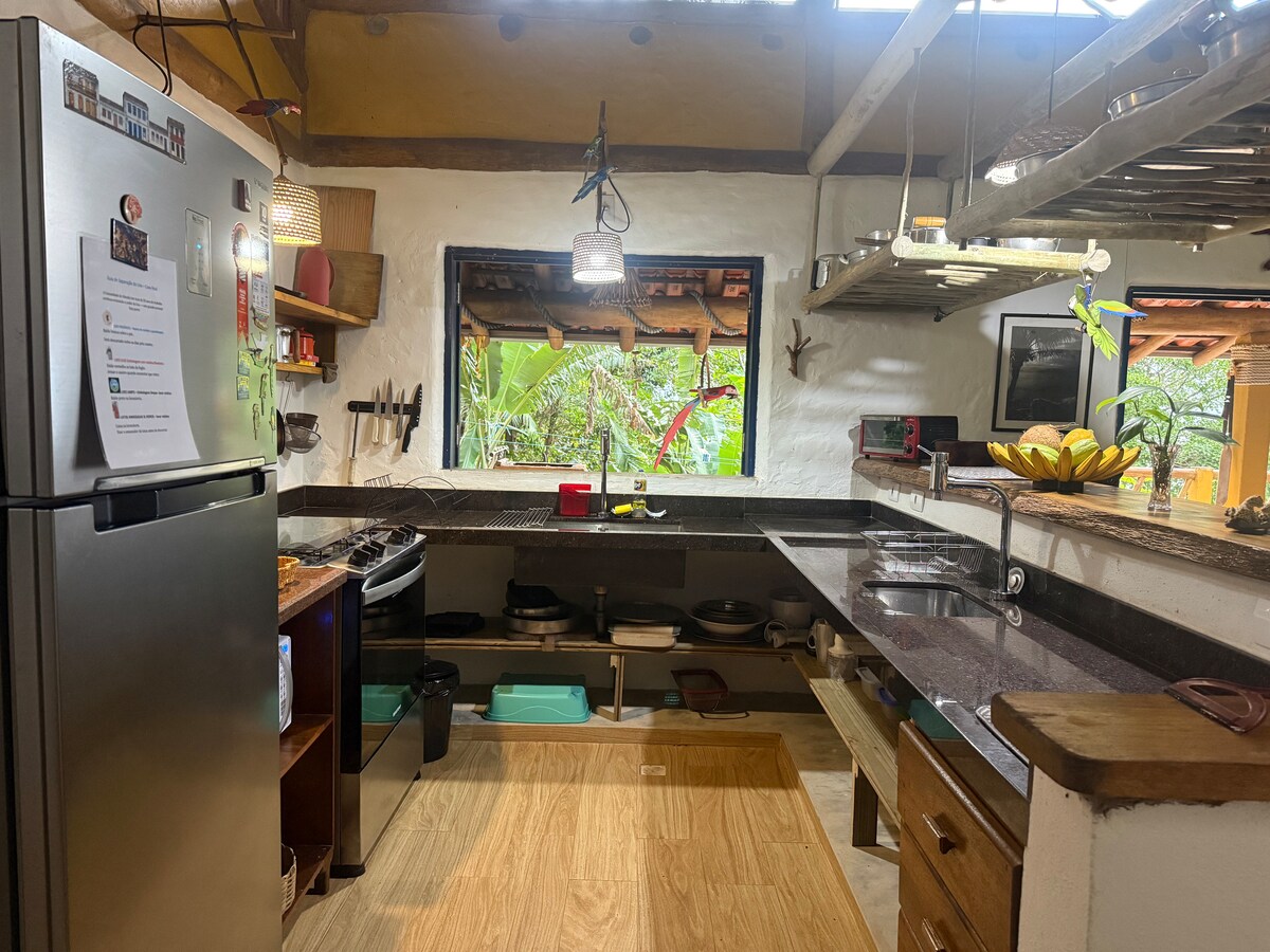 Questa casa è il rifugio tranquillo che stai cercando, con una vista mozzafiato e circondata da uccelli. La cucina integrata con bancone americano e il soggiorno illuminato con mobili rustici creano un'atmosfera accogliente. Sul portico, rilassati su un'amaca o prepara un delizioso barbecue. La camera da letto con letto matrimoniale, TV e armadio, e bagno dotato di vasca e doccia separati, garantiscono il vostro comfort. Inoltre, la casa ha un orto e un cortile. Non perdere l'occasione di goderti questa casa unica!