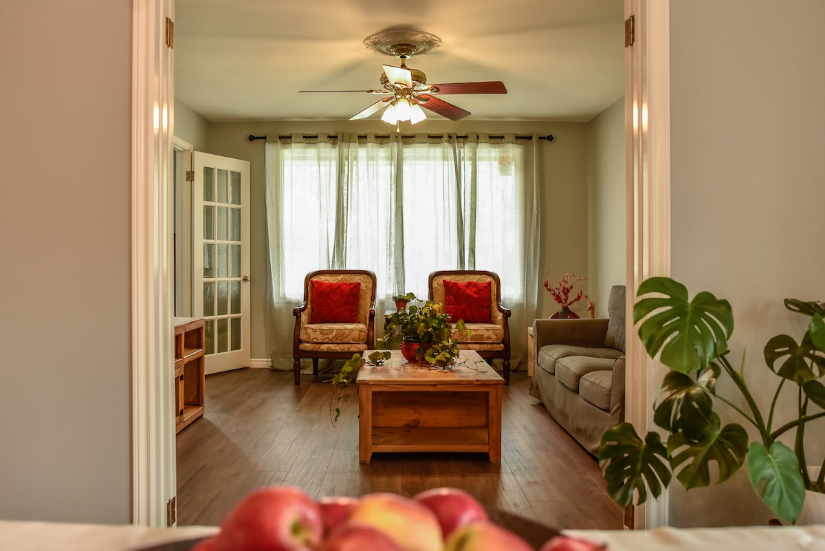 Scopri il comfort in questa suite privata per gli ospiti con self check-in e ingresso indipendente, situata nel tranquillo quartiere di Southwood Lakes. Vicino ai campi da golf e al Devonshire Mall, è perfetto per rilassarsi o esplorare i servizi nelle vicinanze. Goditi una TV con supporto girevole con Netflix dal comodo divano o letto. Entra nell'ampio cortile con uno splendido gazebo ed eleganti posti a sedere, l'ideale per rilassarsi. Bagno di lusso con prodotti. Caffetteria! Prenota oggi stesso per la tua vacanza tranquilla!