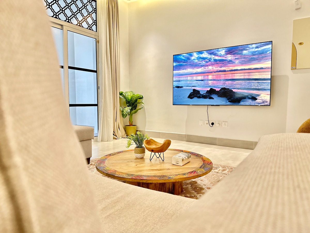 Prova il comfort e l'eleganza del Longan Suites, un moderno appartamento nel cuore di North Riyadh, situato in posizione strategica tra due delle strade principali della città. La scelta ideale per famiglie e viaggiatori d'affari che cercano comfort, raffinatezza e un tocco di lusso. ✨ Caratteristiche: • 2 camere spaziose • 2 bagni (principale con vasca idromassaggio) • Salotto moderno con TV cinematografica Samsung • Cucina completamente attrezzata + tavolo da pranzo per 4 persone • Eleganti finiture e design di illuminazione