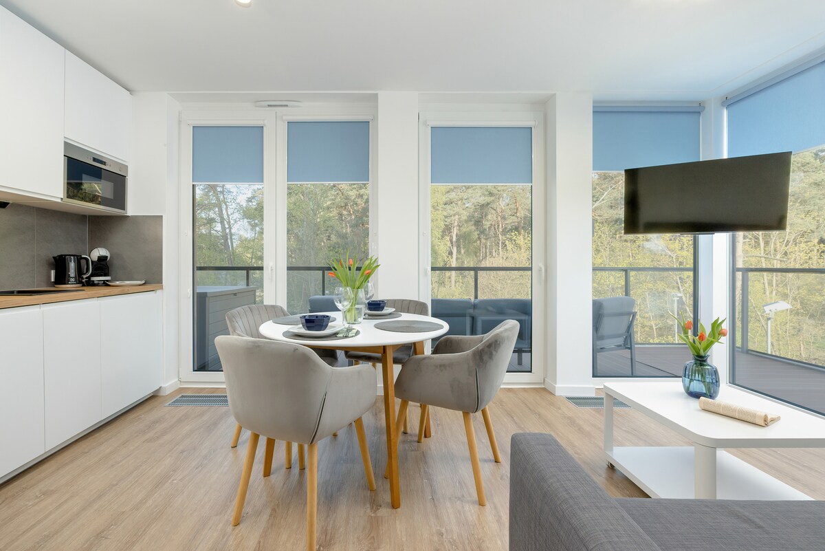 High-end finishes and refined, modern design. A fully equipped apartment with a terrace overlooking the forest, located close to both the sea and the lake. The property lies within the Natura 2000 protected nature park – a former military area, untouched and exceptionally peaceful. A rooftop terrace offers a panoramic view of the sea. Guests have access to a fully equipped kitchen Everything is designed to make you feel at home and enjoy a comfortable, relaxing stay. Excelllent for families