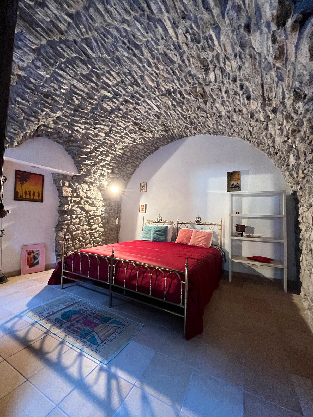 Uno spazio semplice e romantico, una stanza vera senza fronzoli con angolo cottura e un terrazzino che si affaccia sul fiume: da qui si intravede un piccolo ponticello in pietra... e il rumore dell'acqua che scorre. L’alloggio è un’unica grande volta: tutta la casa è stata restaurata utilizzando materiali naturali, calce e vernici fatte con farina e olio di lino. Per i mesi invernali c’è una stufa a legna che gli ospiti potranno gestire in autonomia. Viene fornita la legna per il soggiorno.