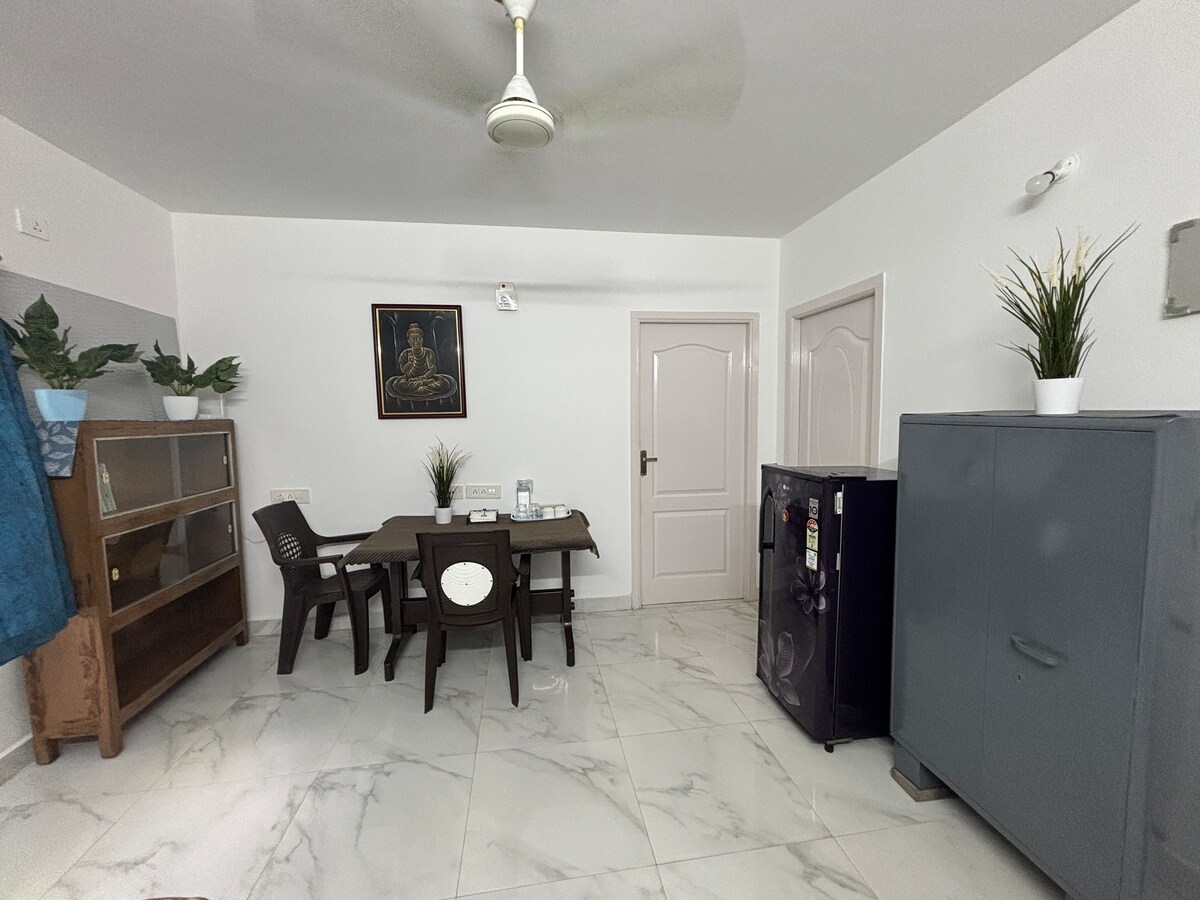 Completamente privato senza condivisione di alcuno spazio, One Studio Room Small Apartment with a slab for kitchen & attached bathroom. Nuovo condizionatore, armadio, letto matrimoniale con materasso in schiuma ortopedica, ideale per due ospiti. La zona cucina contiene un piano cottura a induzione per cucinare con utensili e pentole. Connessione Internet ad alta velocità per lavorare da casa, Google TV con tutte le app, aria condizionata, frigorifero, forno, geyser, sedie, ferro da stiro, ecc. C'è tutto. Alloggio completamente ventilato con 2 grandi finestre. Abbiamo bisogno di un documento d'identità di tutti gli ospiti.
