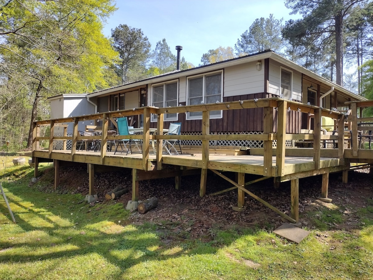 Il cottage si trova sul South River. Con una splendida vista tutt'intorno. La cucina è ottima per cucinare. Ci sono 2 aree per mangiare, 1 interna e 1 esterna, con molti tavoli e sedie sulla terrazza. 2 camere da letto con letti queen-size, una terza stanza con un letto singolo a castello. Inoltre, un divano che si estrae in un letto completo. A pochi passi dalla nostra porta d'ingresso si trova Arabia Mountain Trail. Sembra un posto remoto, ma è vicino a tutto.