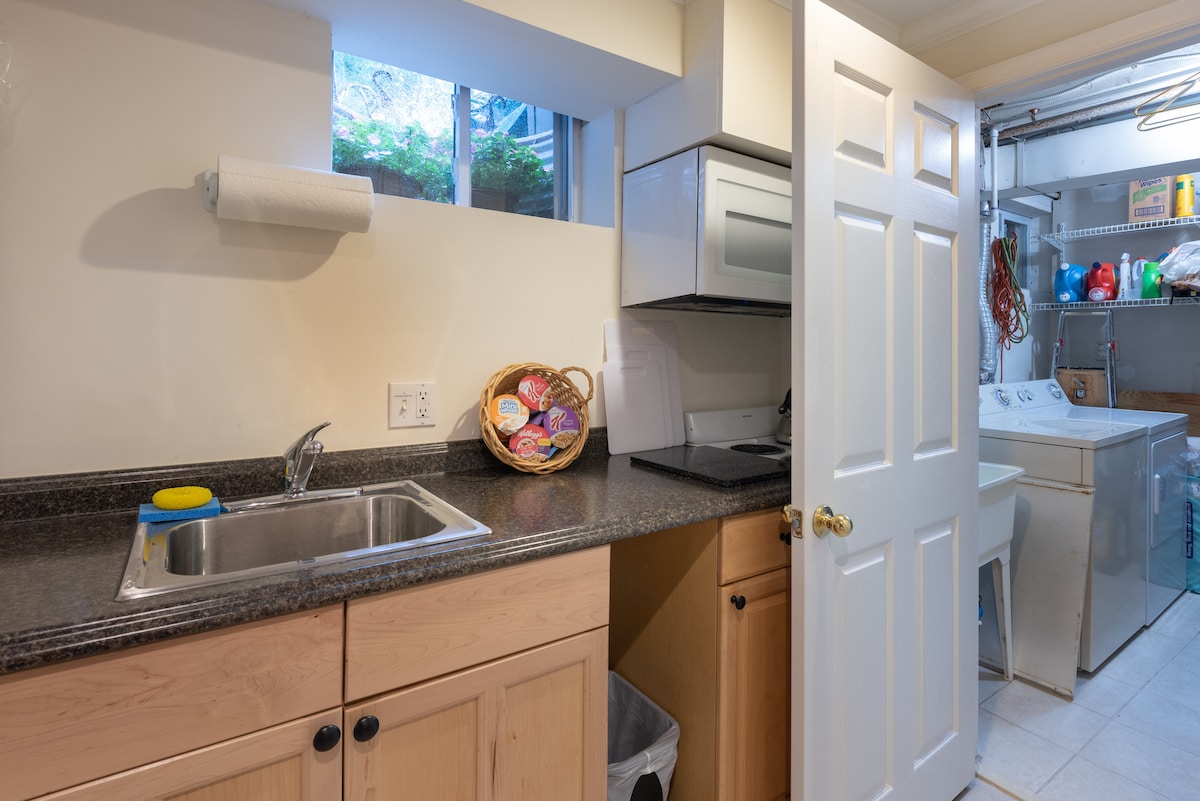 Cozy, private basement ideal for families, business trips, or quiet getaways. Includes a queen bed, one 79"x49" sofa bed, the private bath, the family room with a dining area, the coffee bar, and two smart TV in both the family room and the bedroom. Enjoy fast Wi-Fi, shared washer/dryer, private side entrance, and driveway parking. 20-min walk to Metro, near shops, dining, and parks. Quiet Rockville neighborhood with easy DC access. Guests love the space, comfort, and convenience!