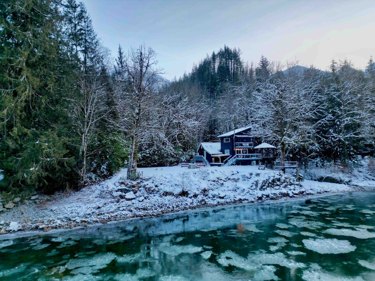 Recharge Chalet è un rifugio privato sul fiume per coppie in cerca di romanticismo e di un riposo profondo. Situato lungo il fiume Skykomish, vicino allo Stevens Pass, questo alloggio ti permette di immergerti nella vasca idromassaggio, rilassarti nella sauna in cedro e rinfrescarti sotto le docce all'aperto. Addormentati con il fiume come sottofondo, ammira le stelle dalla terrazza e svegliati a pochi passi dalla tua spiaggia privata. A un'ora da Seattle, nel cuore della regione escursionistica delle Cascate