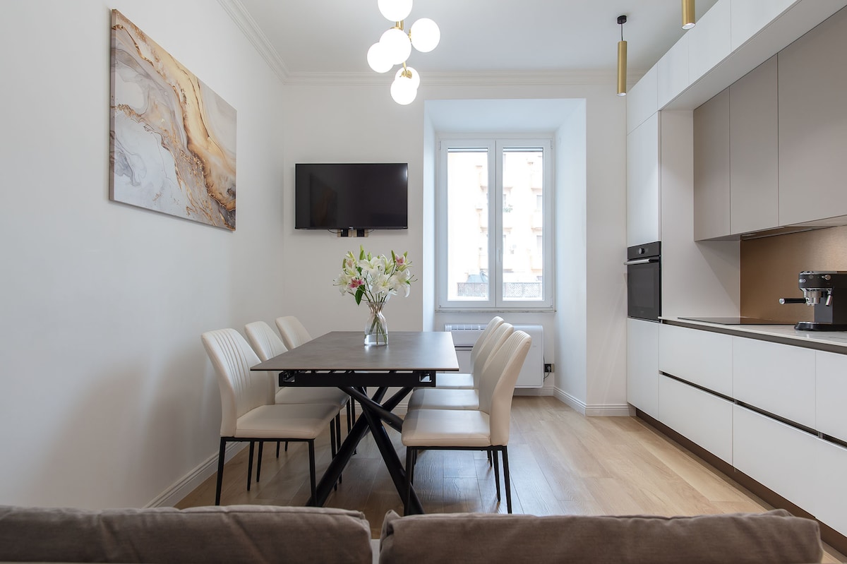 La vostra lussuosa casa al centro di Roma con Metro e Taxi a pochi passi. Troverete: - aria condizionata in ogni stanza. - domotica, Alexa, TV LED con Netflix e Disney+ in ogni stanza; - spazioso salotto con 2 grandi divani; - zona pranzo con una moderna cucina completa di ogni utensile; - 3 accoglienti camere da letto con letti queen size e armadio; - 3 bagni completi con doccia e vasca idromassaggio per 2 persone; - lavanderia con lavatrice, asciugatrice e ferro da stiro; - balcone su Roma