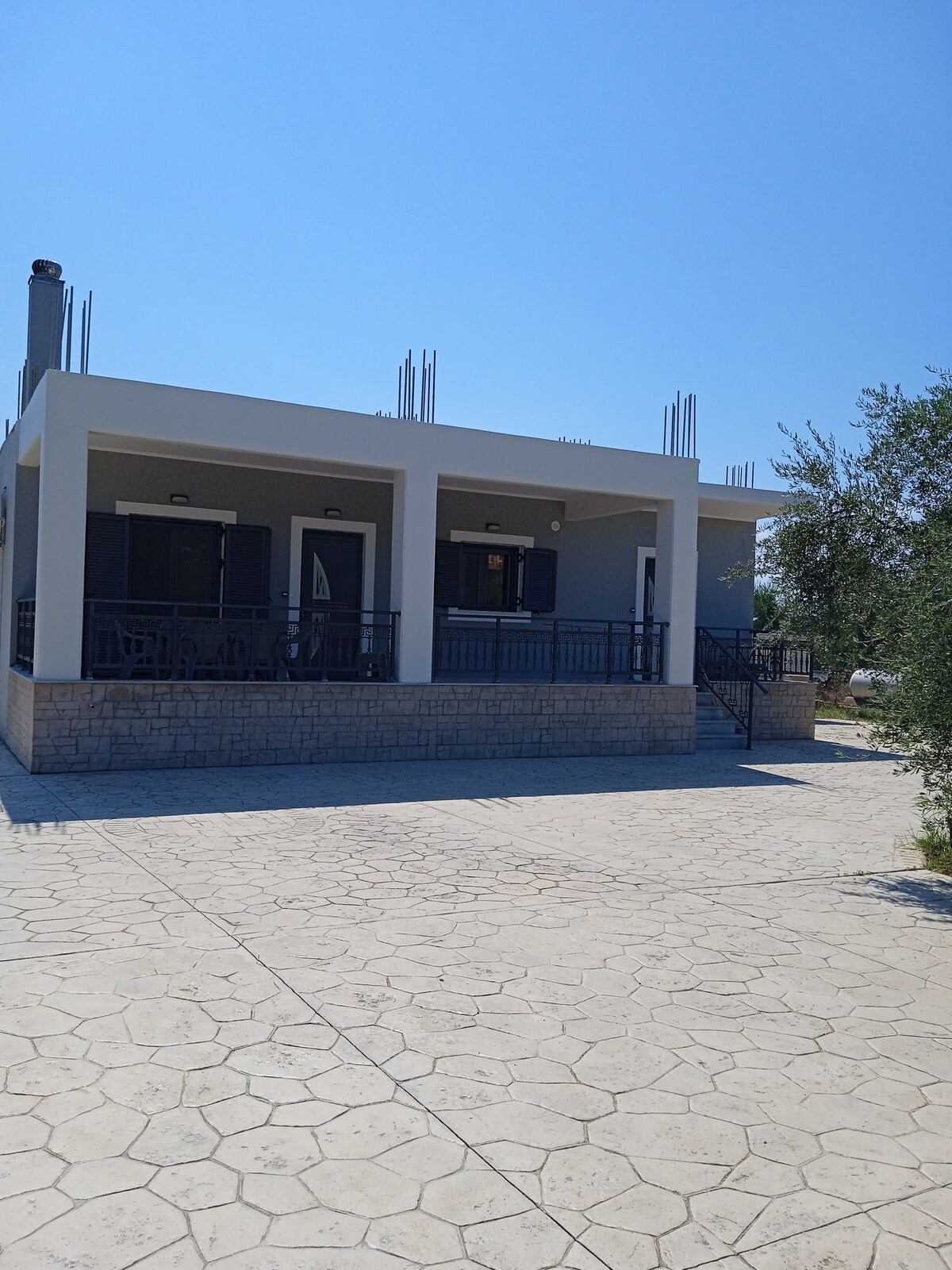 Luminosa, pulita, casa di nuova costruzione, con una cucina completamente attrezzata, spazi confortevoli, parcheggio , ampio cortile. Costruito in un oliveto tradizionale, all'interno del villaggio, vicino a mini mercati, taverne tradizionali e spiagge organizzate e siti archeologici visitati (Paleokastro - Castello Navarino, Palazzo Nestor).