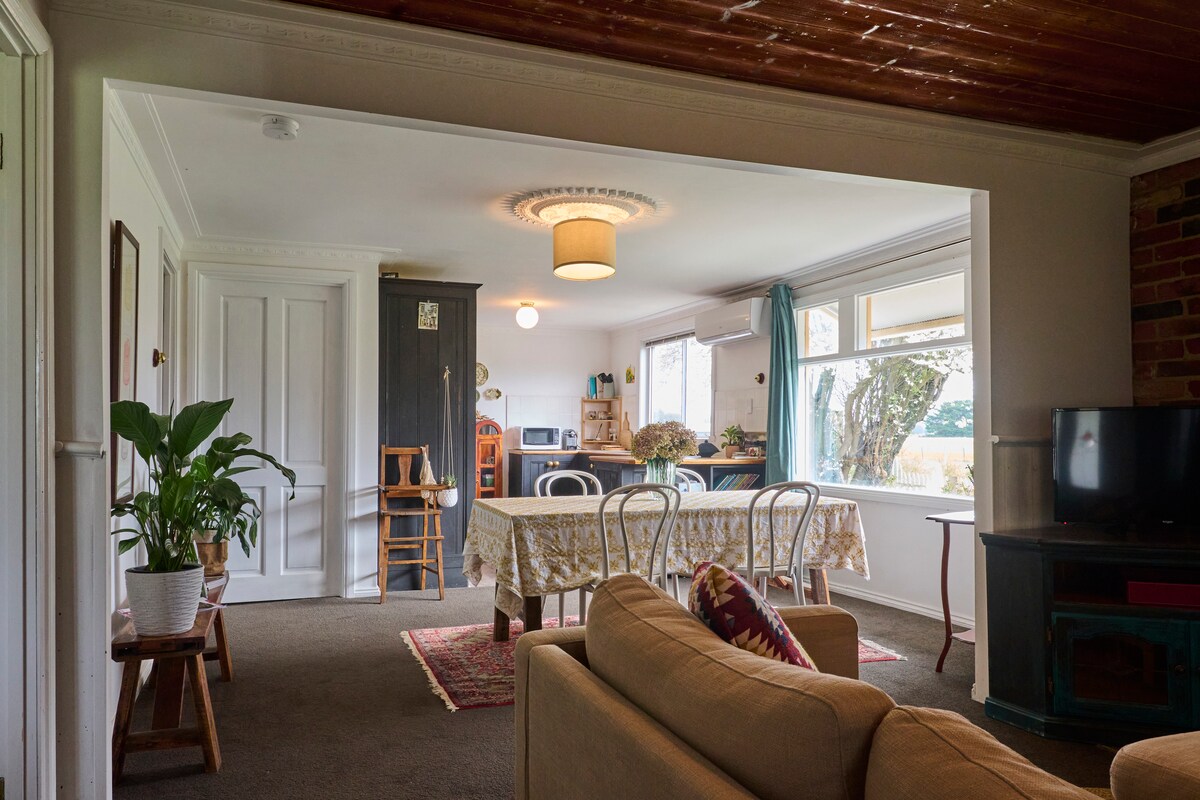 Benvenuti alla Hanging Rock Truffle Farm sulle Macedon Ranges. Questo capannone per la tosatura del 1890 è stato riprogettato con amore e raffinatezza rurale. Progettato da Lynda Gardner/Belle Bright, l'Appleyard Cottage offre comfort, romanticismo e calore. Con viste spettacolari su Hanging Rock, questa struttura offre ai nostri ospiti l'accesso a splendidi giardini e a un ruscello stagionale che scorre fino a un lago circondato da splendidi salici. Goditi anche il campo da tennis e la piscina. Top 10: finalisti Airbnb Awards Best Design Stay 2025