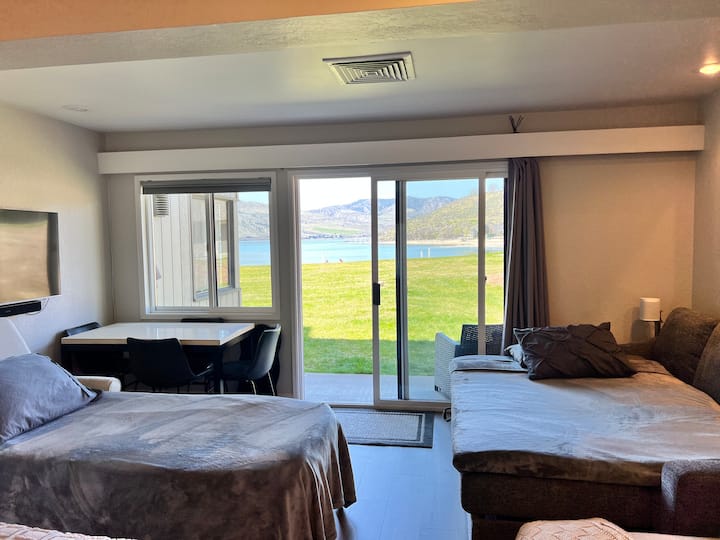 A pochi passi dalla riva del lago Chelan, questo appartamento STUDIO al piano terra è perfetto per coppie e piccole famiglie, dispone di un letto matrimoniale a scomparsa, un divano letto estraibile, un divano letto matrimoniale con materasso in memory foam, bagno completo con toilette e una cucina ben attrezzata. Goditi la spiaggia privata, la piscina olimpionica e le attrazioni vicine, a 10 minuti a piedi dalla città o a 5 minuti in auto dal parco acquatico. Campo da sottaceto e pagaie! Piscina chiusa dal 1° ottobre al 15 maggio. Vasca idromassaggio aperta tutto l'anno dall'alloggio.