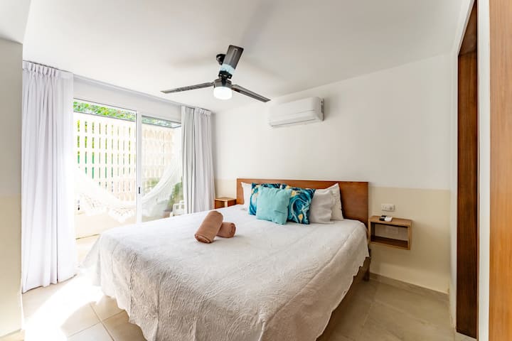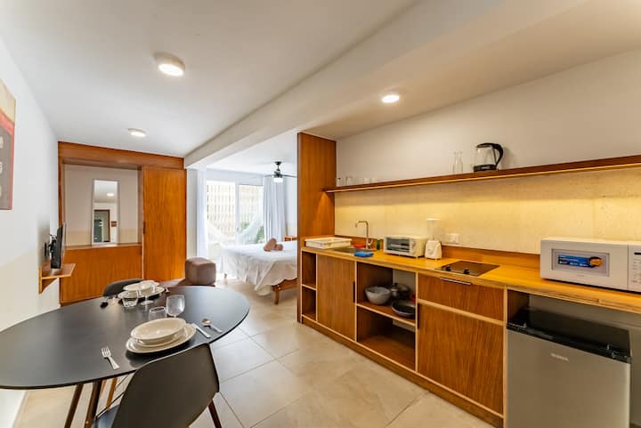 Monolocale con cucina, Wi-Fi, aria condizionata, balcone, letto king-size, in centro
