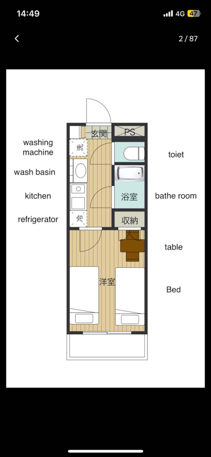 Osaka, Giappone. Intero alloggio: appartamento con trattamento alberghiero