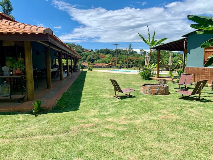 Piscina, lago per pescare, Stand-up, Quadra de Beach tennis, Futvôlei, Barbecue, piano cottura a legna, forno per pizza, Fogueira, Horta.