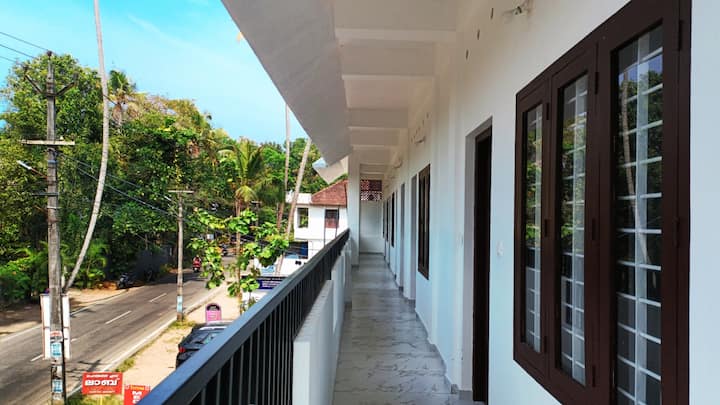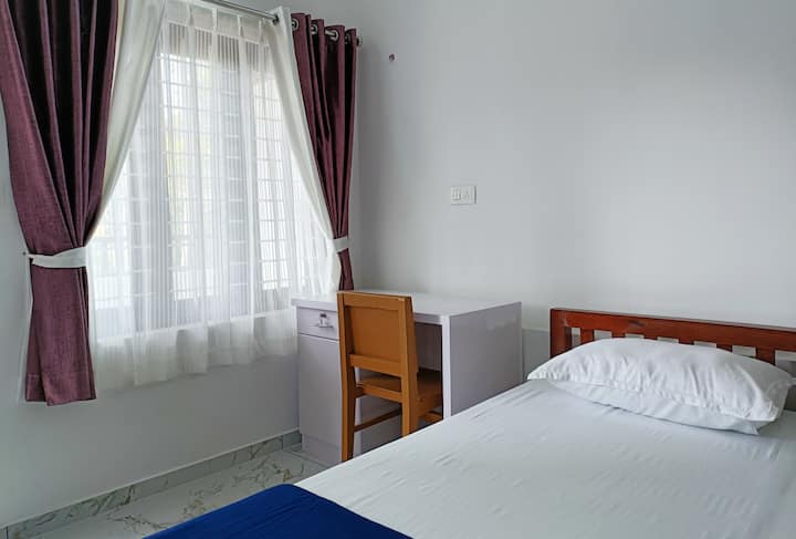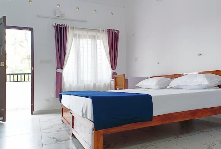 Benvenuti alla Floria Guest House, un incantevole e nuovissimo rifugio a soli 500 metri dalla spiaggia di Marari a Mararikulam, in Kerala. La nostra pensione offre un soggiorno tranquillo per i viaggiatori, dotato di una camera non AC con bagno annesso, un grande letto matrimoniale e servizi di acqua calda per il vostro comfort. Goditi l'atmosfera naturalmente fresca delle nostre camere, ideali per il relax anche durante i mesi estivi. Scopri comfort e convenienza in un ambiente sereno presso la Floria Guest House. La stanza è dotata di un ventilatore e di una zona salotto per un maggiore comfort.