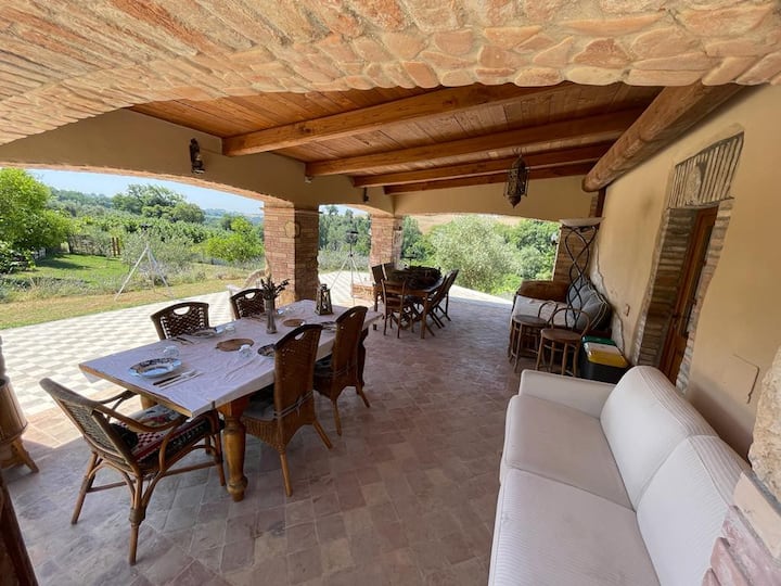 camera in casale con patio