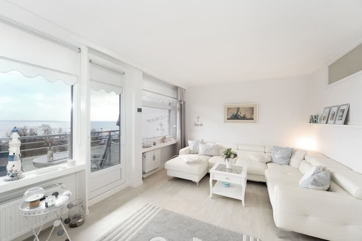 In una posizione privilegiata di Kellenhusen: appartamento marittimo di 1,5 locali al 5 ° piano con balcone, vista mare, ascensore e una superficie abitabile di circa 38 m² per un massimo di 2 persone.