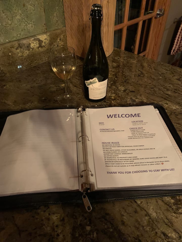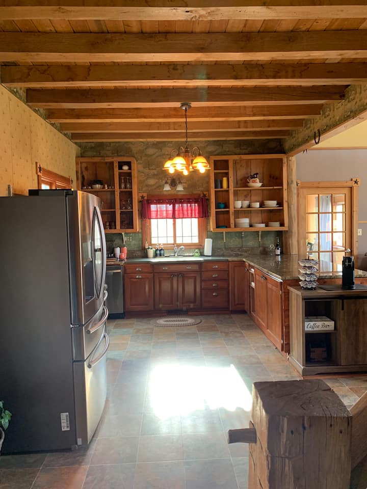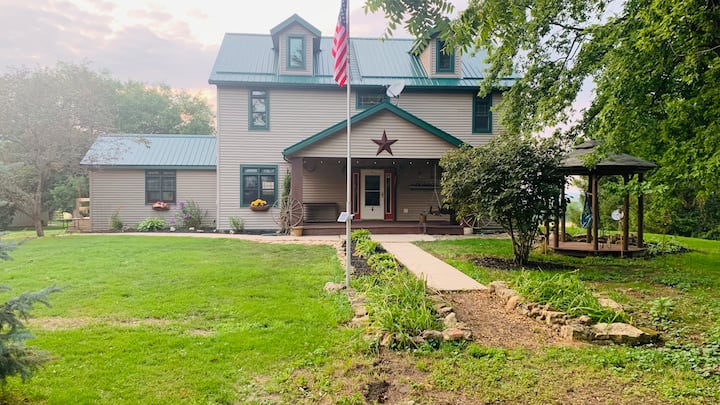 Rilassati con la tua famiglia o alcuni amici nel nostro ranch situato in un ambiente tranquillo e rurale. Che tu abbia bisogno di un po' di tempo libero con gli amici o di una vacanza in famiglia, ti copriamo noi. Puoi soggiornare nell'esclusiva casa a tema ranch o dirigerti in quasi tutte le direzioni e ritrovarti in un bar o ristorante di campagna. Nel raggio di pochi chilometri, ci sono campi da golf, cantine, ristoranti, fiume che galleggia a pochi chilometri di distanza e molte altre cose da fare! Goditi i pass giornalieri gratuiti per il lago Summerset, dove su richiesta potrai goderti la spiaggia e la piscina. C'è anche un bar sportivo super divertente e una sala da bowling! Abbiamo anche delle scuderie, se vuoi portare un cavallo! In inverno, il sentiero per motoslitte attraversa la nostra proprietà. Rilassati nella vasca idromassaggio per 7 persone con una splendida vista. KC House è perfetta anche per piccoli eventi come un weekend tra ragazze o ragazzi, una doccia per bambini o una nuziale o un numero qualsiasi di altre celebrazioni.