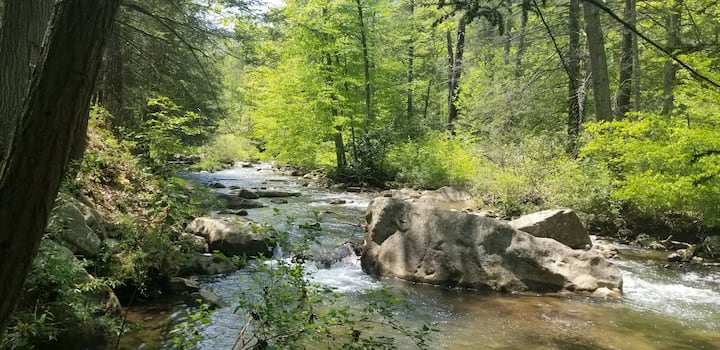 Abrams Creek è vicino a molti straordinari siti ricreativi, ma è anche la sua destinazione. Non sei mai lontano dal nostro ruscello di acque bianche che attraversa una maestosa foresta di cicuta.