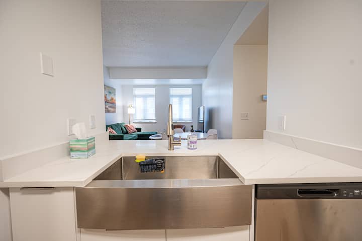 Le nostre unità sono rifornite dei seguenti servizi di base: 1 rotolo di carta assorbente, 2 rotoli di carta igienica per bagno, bagnoschiuma, sapone per le mani, detersivo per piatti, detersivo per lavastoviglie e 2 grandi sacchetti della spazzatura. Le cucine sono dotate di caffettiera KEURIG, pentole/padelle, utensili e stoviglie per 8 persone. I centri lavanderia contengono lavatrice e asciugatrice di grandi dimensioni, oltre a un ferro e un'asse da stiro. Se hai bisogno di altri articoli, c'è un negozio di alimentari Harris Teeter dall'altra parte della strada.