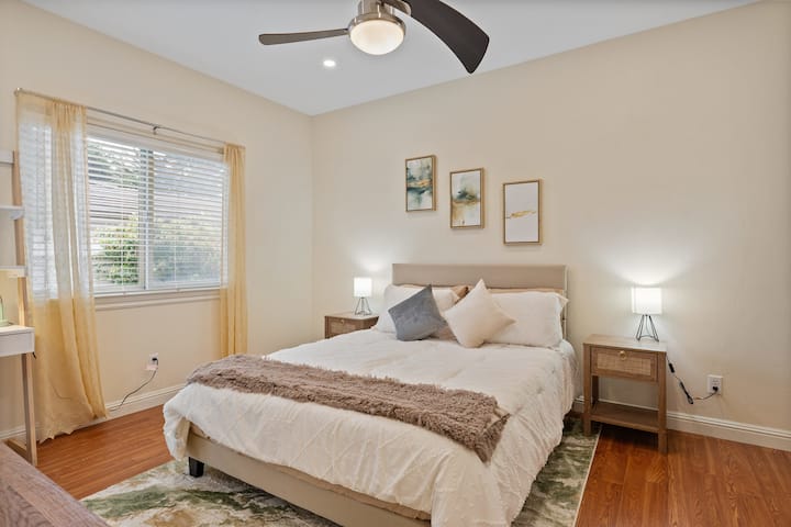 Avrai accesso alla casa con 2 letti/2,5 bagni, al cortile e al garage. Si prega di notare che c'è un monolocale casita nella parte anteriore della casa che sarà vuoto e chiuso a chiave. I proprietari possono soggiornare un weekend una volta in una luna blu, ma hanno un ingresso completamente separato e l'unità è separata dalla casa, chiusa a chiave tramite 2 serrature su entrambi i lati della porta condivisa.