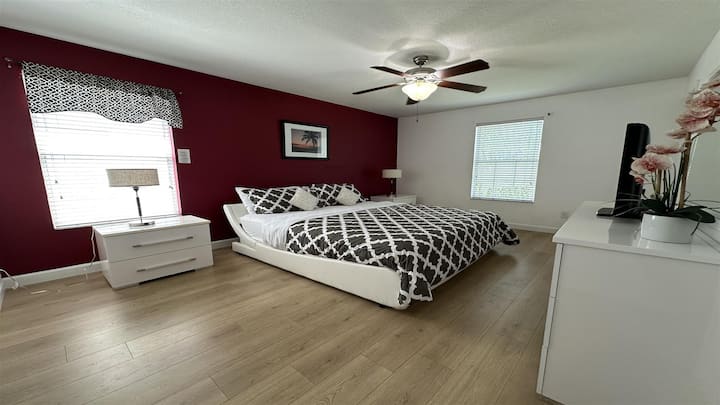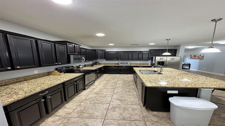 Dopo una giornata di divertimento a Orlando, apprezzerete sicuramente la comodità di 5 bagni nella vostra casa vacanza di lusso per soddisfare le esigenze di toelettatura e cura personale della vostra famiglia e degli ospiti. E quando è il momento di ritirarsi alla fine della giornata, potrai rilassarti in una delle sei camere da letto della tua casa vacanza Paradise Palms. Se viaggi con un bambino o un neonato, puoi lasciare l'attrezzatura per bambini a casa perché la tua villa vacanza Paradise Palm è pronta per il bambino con seggiolone, passeggino, culla e cancello per tenere al sicuro il tuo bambino. E se venite a trovarci con più di un bambino, possiamo fornirvi l'attrezzatura extra di cui avete bisogno.