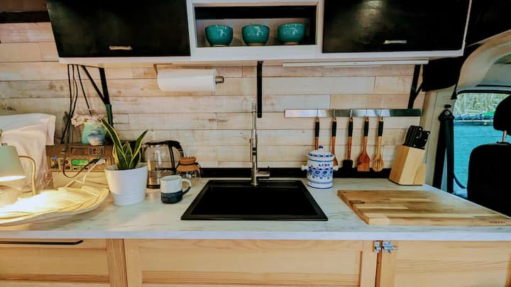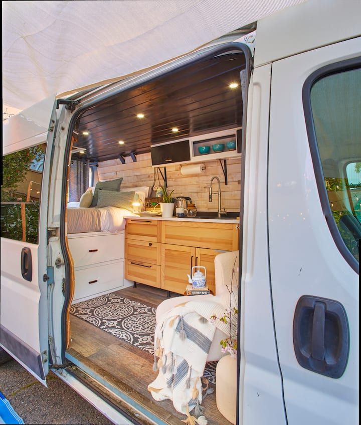 Questa configurazione semplice e conveniente è ideale per i viaggiatori flessibili e alla mano. Il camper è un van privato convertito Ram Promaster High Roof situato nel cortile di una grande casa condivisa con 7 camere da letto e 2,5 bagni. Include un letto matrimoniale, riscaldamento, TV e arredi di base. È accogliente, pulito e sicuro, ma è comunque un glamping, non un soggiorno di lusso.