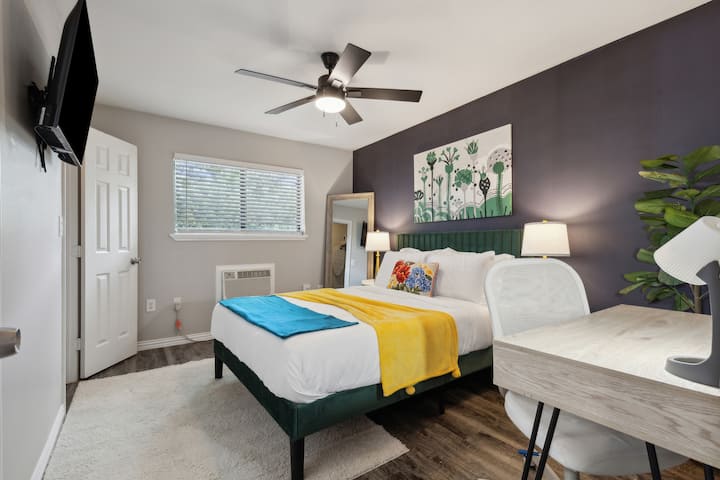 Benvenuto nel tuo spazio elegante e accogliente ad Arlington! Questo spazio moderno è situato in una posizione perfetta, a pochi minuti da tutte le tue attrazioni preferite, da UN PARCHEGGIO GRATUITO e a pochi passi dall'AT&T Stadium. Molto vicino a Six Flags, Ripley 's Believe It or Not e DFW airport.