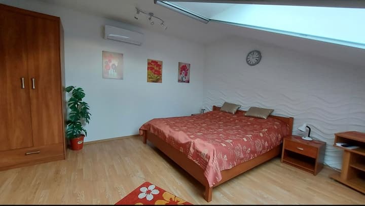 L'appartamento Vukmán è situato nel cuore della bellissima cittadina di Vas, Sárvár, a circa 200 metri dietro il famoso Castello di Nádasdy. L'accogliente piazza principale con la sua fontana e le sue campane musicali dista solo 300 metri. Chi vuole rilassarsi può visitare l'Arboreto, che dista circa 100 metri dalla piazza principale. La Piscina e Spa Wellness Sárvári dista 750 metri. Dalla piscina, puoi visitare lo zoo di animali domestici e la maneggio nel Vadaskert, che offre anche opportunità di equitazione. Proseguendo, il lago in barca attende gli amanti dei pedalò e della nautica. Un parco per il tempo libero e l'avventura qui creato si occupa del benessere fisico e mentale, in un ambiente meraviglioso, senza barriere architettoniche. La passeggiata sul viale può terminare presso il nostro condominio in fondo alla strada, dove è presente un parco giochi per bambini, ping pong e barbecue per adulti. Il cortile si apre con cancello chiuso, elettrico, e oltre al parcheggio gratuito, è presente anche una stanza coperta per riporre biciclette e passeggini per i nostri ospiti. C'è un ristorante a 200 metri dalla casa, un negozio a 350 metri, parrucchieri-_cosmetici e meravigliosi negozietti sulla via principale. Naturalmente a Sárvár ci sono diversi ristoranti, pub e gelaterie, ma se necessario, la farmacia si trova anche nel raggio di 300 metri. I negozi Spar, Penny, Tesco e Lidl vicino alla spa e vicino alla stazione offrono grandi negozi. L'appartamento Vukmán si trova al 3° piano dell'edificio in via Hold, raggiungibile con l'ascensore. La cucina e il bagno che si aprono dalla hall sono ben attrezzati. In cucina: macchina tè e caffè, tostapane, filtro acqua e bollitore, piatti, piatti, posate, asciugamani da cucina sono a disposizione dei nostri cari ospiti. Il bagno è dotato di asciugacapelli, sapone e sapone liquido. La camera è ampia, di circa 30 mq, su un lato di cui si trova un letto matrimoniale, una TV a schermo piatto e armadi per fare le valigie, inoltre, dietro al comodino accanto al letto, doppie spine su entrambi i lati aiutano il funzionamento dei telefoni cellulari. Dall'altra parte della stanza c'è la comoda zona pranzo. L'appartamento è dotato di aria condizionata, riscaldamento centralizzato, e i nostri cari ospiti riceveranno il codice Wifi all'arrivo. C'è un ombrello nella hall e un portaombrelli dietro l'appendiabiti, per ogni evenienza. A Sárvár è possibile anche fare gite in carrozza trainata da cavalli a un orario prestabilito, il noleggio di biciclette e un piccolo treno completano l'esperienza. Il castello di Nádasdy e il suo parco invitano tutti alla cultura, alla passeggiata e al relax. Divertiti con noi a Sárvár e nel nostro grazioso, ben attrezzato e accogliente appartamento, l'appartamento Vukmán!