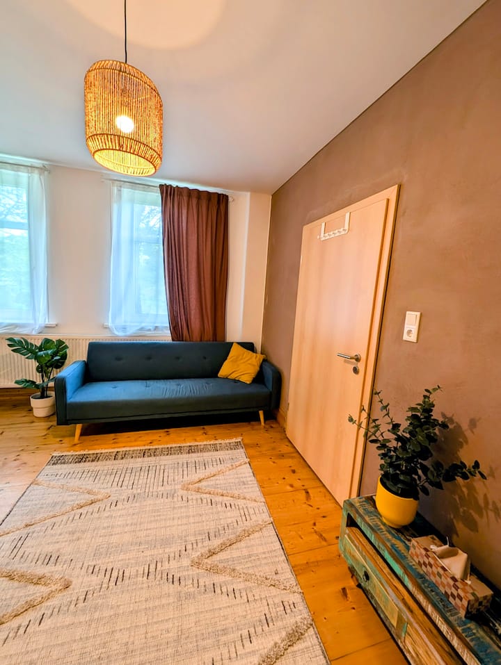 Solo il corridoio è ancora arredato in modo provvisorio e l'arredamento è ancora in attesa della sua messa a punto finale. Tra il soggiorno e la camera da letto e la cucina manca ancora l'anta della porta, motivo per cui offriamo l'appartamento come monolocale. I genitori che viaggiano con bambini piccoli possono utilizzare la sala comune per una serata in coppia senza dover stare in punta di piedi ;-)