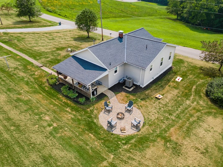 Benvenuti allo Sugar Grove Farmhouse - Hocking Hills, situato nella splendida regione di Hocking Hills, proprio accanto a Hideaway Hills! Vieni a goderti un fantastico soggiorno in questo casale splendidamente ristrutturato che si trova in una fattoria di fieno completamente funzionante. Goditi la splendida vista sui campi di fieno e sulla fauna selvatica che circondano la casa. Il luogo perfetto per osservare gli uccelli mentre ci si diverte con amici e familiari quando si visita la zona di Hocking Hills!