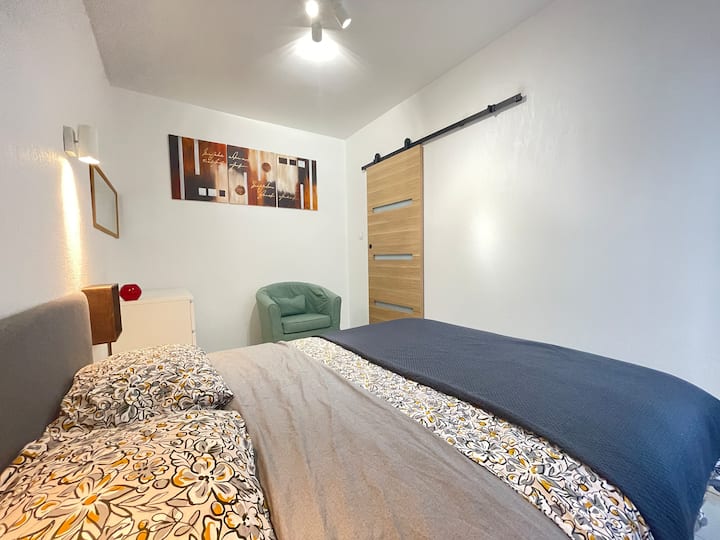 L'alloggio può ospitare fino a 4 persone, compatto, pulito, con lavatrice e asciugatrice.Puoi arrivare da Basilea in 10 minuti con l'autobus n. 604, fermata Jura