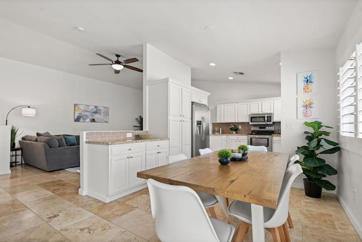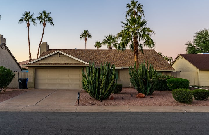 Siamo Ramin e Valerie, genitori orgogliosi di una famiglia mista di cinque bambini fantastici. Per 13 anni, le nostre vite sono state piene di avventure in famiglia: pallavolo, wrestling e gare di cavalli. Amiamo trascorrere del tempo con amici e familiari e non vediamo l'ora di condividere con te la stessa sensazione di comfort. La nostra casa a Scottsdale è la tua vacanza perfetta: bella, accogliente e piena di fascino. Rilassati o esplora: speriamo che il tuo soggiorno ti piaccia tanto quanto a noi piace ospitare!