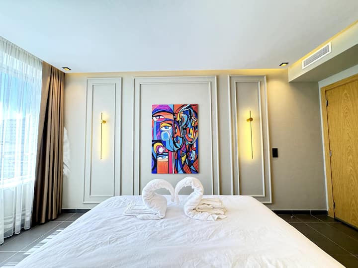 Suite di lusso sull'ultimo piano di un Hilton sulla spiaggia con parcheggio