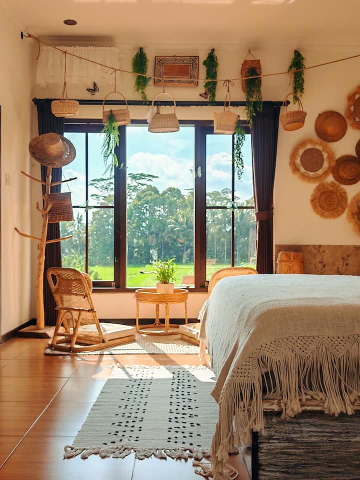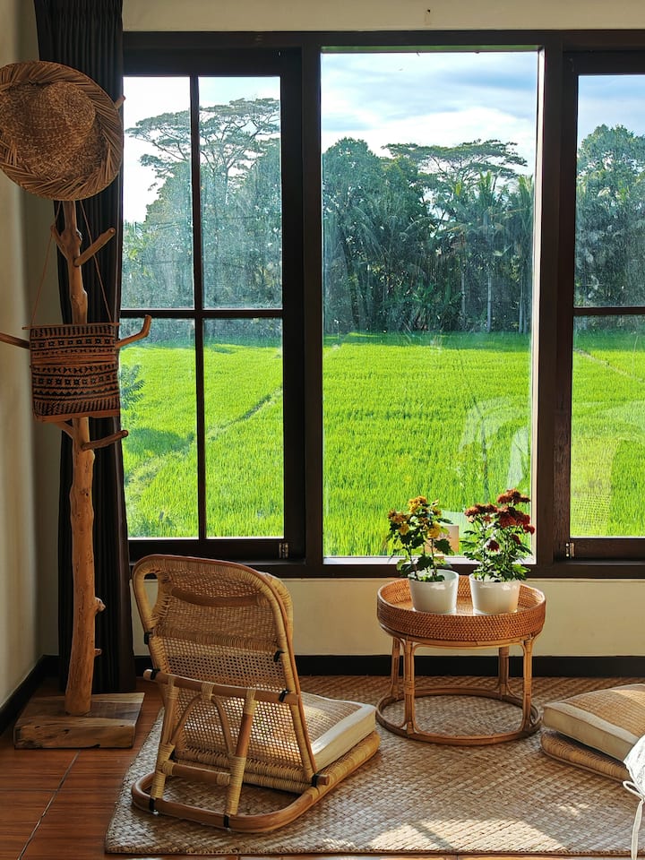 Sentiti a casa: puoi rilassarti a bordo piscina, goderti la brezza del giardino, cucinare nella cucina in comune, fare il bucato o semplicemente sederti sul balcone al piano di sopra e ammirare la vista sulle risaie.