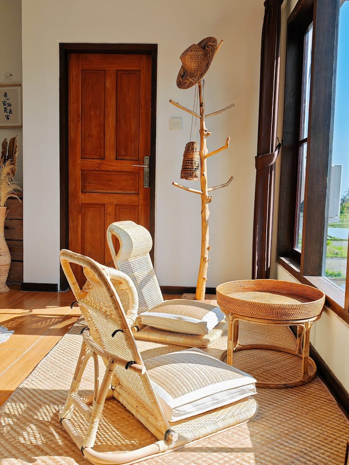 Goditi una vista mozzafiato a 360° sulle risaie dal balcone. Svegliati all'alba, rilassati al tramonto e osserva le lucciole al crepuscolo, senza uscire di casa.