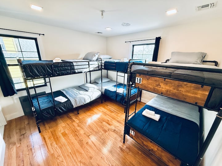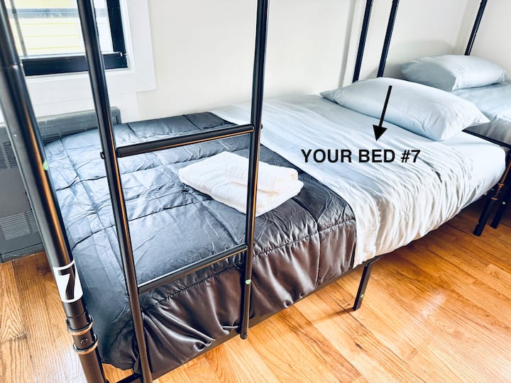 Questa affascinante casa si trova a 10 minuti dall'aeroporto di Newark e a 25 minuti da New York. Si prega di notare che questa è una stanza condivisa. Per favore scegli lo spazio che hai visto nella foto. (controlla la foto come riferimento!). Spazio letto 11.
