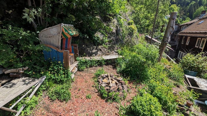 Se in realtà non dovesse nevicare nell'Harz, potete riempire di vita il nostro piccolo e avventuroso giardino di montagna. Chi si siede lì abbastanza a lungo e fissa l'abete calpestato, a volte può vedere le streghe selvagge che volano avanti e indietro sulla loro scopa. Sul trambusto di abete segato viene posta la prima casa per le streghe selvatiche.
