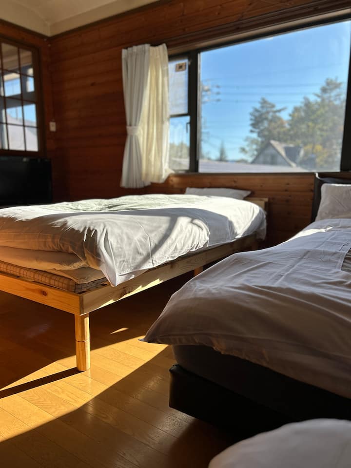 Camera C, Guest House nella zona delle ville di Hakuba, camera per 4 persone con servizi igienici, bagno e cucina in comune Letto matrimoniale 1 Letto singolo 2