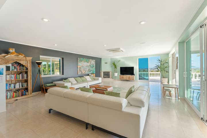 Dotata di aria condizionata completa, Wi-Fi illimitato in fibra, una grande piscina privata e una vista mozzafiato sulla baia di Lagos, questa proprietà di 6 camere da letto di 600 m ² su 1500 mq è autorizzata a ospitare comodamente 12 ospiti + 2 overflow, 14 in totale. Gli interni arredati con gusto vantano un moderno di fascia alta con fascino.
