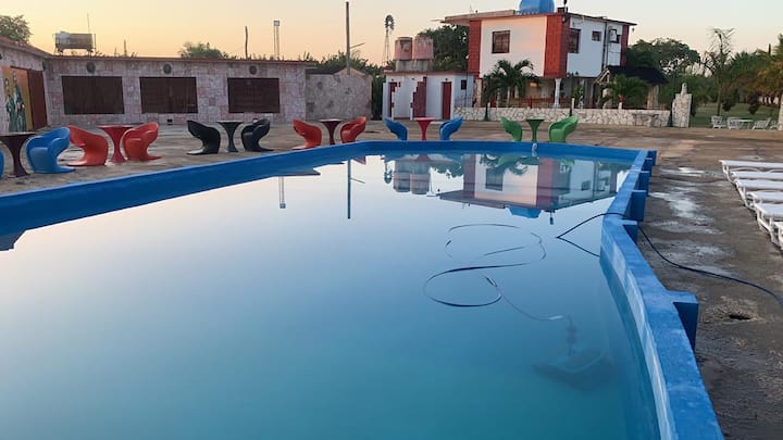 Questo è uno dei pochi alloggi in zona dotati di piscina.