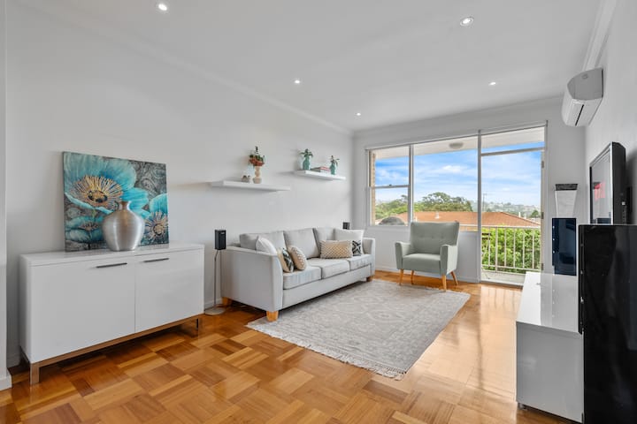 Luminoso appartamento con 2 camere da letto e vista sulla città vicino alla spiaggia di Rose Bay