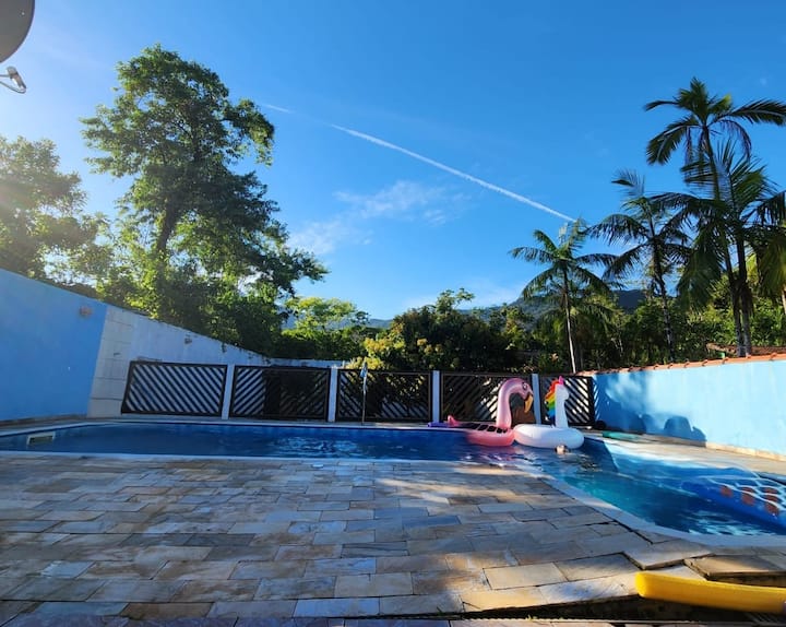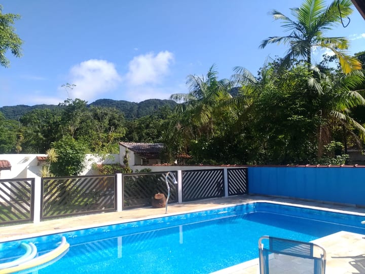 Situata nella Serra do Guaraú, la casa è circondata dal verde e dal suono degli uccelli, il che rende l'ambiente ideale per rilassarsi.
