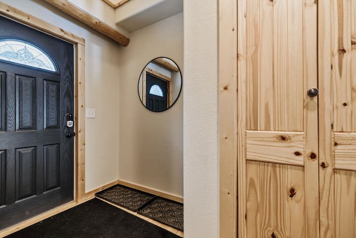 Prendi la scala a chiocciola fino al piano superiore della casa, dove troverai due accoglienti camere da letto, entrambe con viste incredibili, cuscini morbidi, letti a due piazze e smart TV. Tutti i letti della casa sono dotati di piumini nuovi di zecca e la nostra comoda biancheria in cotone, assicurandoti di svegliarti ben riposati, rinfrescati e pronti per qualsiasi avventura che un giorno sulle Montagne Rocciose possa permetterti. Il bagno al piano superiore offre un toeletta di grandi dimensioni, servizi igienici standard con bidet e vasca/doccia combinate. A disposizione degli ospiti una lavanderia con lavatrice e asciugatrice a grandezza naturale, quindi non c'è bisogno di sprecare tempo prezioso per le vacanze nella lavanderia a gettoni in città.