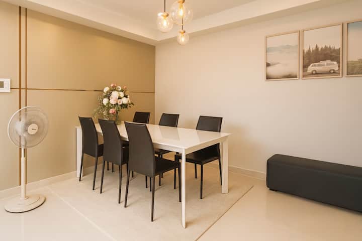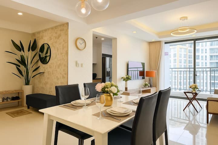 Situato in una posizione privilegiata al 21° piano, il nostro appartamento di 100 m² offre uno spazio abitativo confortevole, sicuro e ben attrezzato. Con vista panoramica sulla città, puoi immergerti nella vivace vita cittadina mantenendo privacy e tranquillità. La sua posizione centrale è a soli 10 minuti da Nguyen Hue Walking Street e a 5 minuti da Bui Vien Street, il che la rende comoda per esplorare la città. Questa è la scelta perfetta per il tuo soggiorno a Ho Chi Minh.