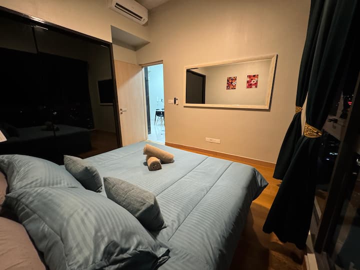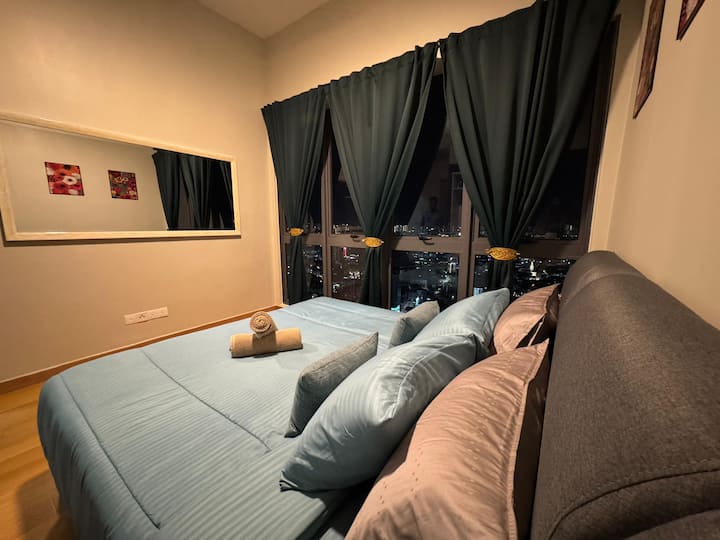 Una camera da letto più una camera da letto. Accogliente e moderno nel cuore del Triangolo d'oro di Kuala Lumpur, a pochi passi dal Quill City Mall e dal Medan Tuanku LRT. Goditi la vista mozzafiato del KLCC dalla piscina sul tetto. L'appartamento è dotato di letto matrimoniale, aria condizionata, angolo cottura, WiFi gratuito e doccia calda/fredda. Perfetto per chi viaggia da solo o in coppia, con facile accesso a negozi, ristoranti e attrazioni come il Padiglione e le Petronas Twin Towers.