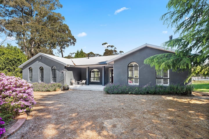 Spaziosa casa per famiglie con 4 camere da letto e 3 bagni, 2 spazi abitativi interni, terrazza esterna con tavolo da pranzo e divano, piscina, camino interno nel soggiorno principale e focolare esterno. Tutto ciò di cui hai bisogno e a pochi passi (1 km) dal meraviglioso villaggio di Bundanoon, nelle Highlands. C'è un garage/fienile in loco che non è disponibile per l'uso, ma c'è un parcheggio per un massimo di 4 auto nel vialetto.
