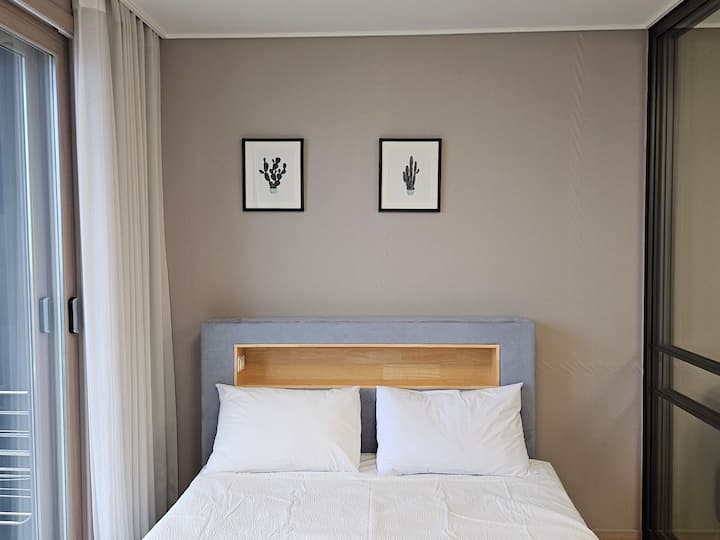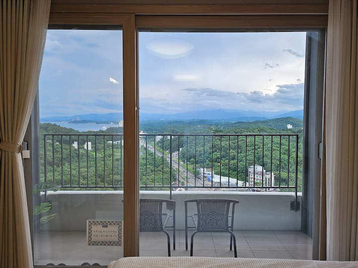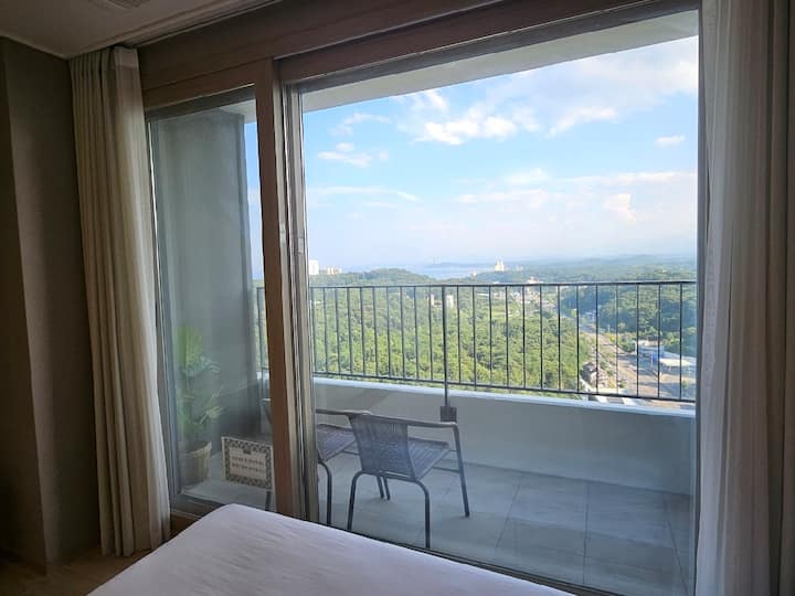 Blue Terra, 23° piano, monolocale con vista sull'oceano e sul monte Seorak, a 5 minuti dalla spiaggia di Sokcho, per 5 persone, possibilità di cucinare, purificatore d'acqua, Netflix