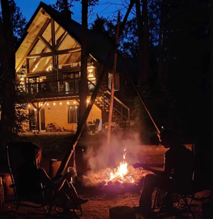 Chalet off-grid per famiglie, tranquillo in riva al lago.