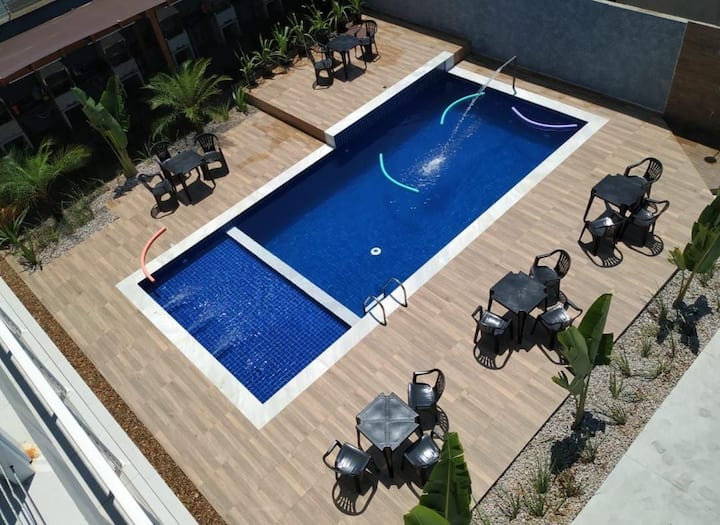 Questo è uno dei pochi alloggi in zona dotati di piscina.
